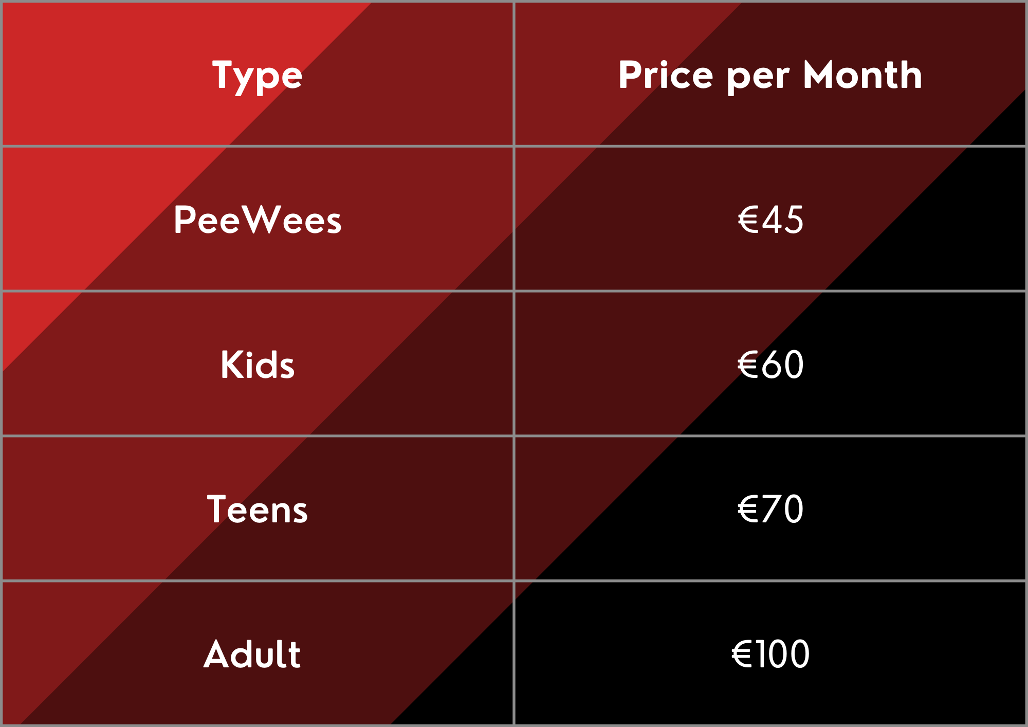 We also believe in fairness. Enquire about family rates or rates for special circumstances at reception@nafiannamartialarts.ie